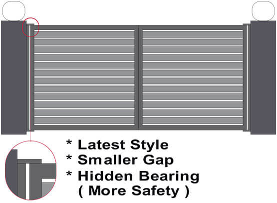 A system for moving and folding a gate assembly, which comprises at least one gate assembly having at least a first portion and a second portion that are connected by at least one hinge forming t..